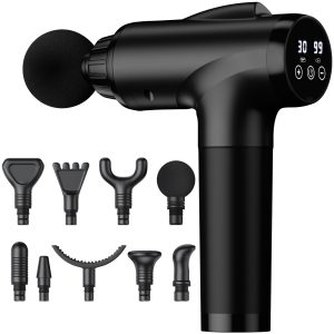 Massage Gun Deep Tissue, Handheld Electric Muscle Massager, High Intensity Percussion Massage Device for Pain Relief with 9 Attachments & 30 Speed(Black)
